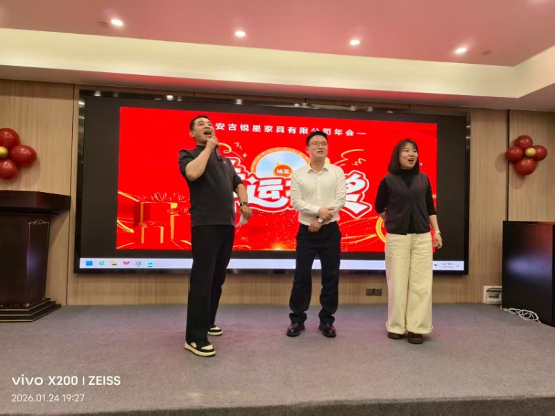 Pada tanggal 24 Januari 2026, Furnitur Anji Ruixing mengadakan pertemuan tahunannya di Hotel Anji Borui yang bergengsi, tempat para eksekutif dan manajemen perusahaan berkumpul untuk merayakan pencapaian tahun lalu dan mendiskusikan tujuan masa depan. Acara ini dipenuhi dengan kegembiraan, persahabatan, dan pengakuan atas kontribusi luar biasa.